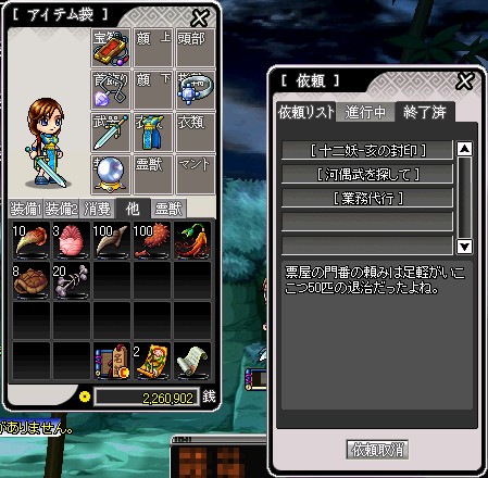 案内人から粗品を貰い、クエを受けに…